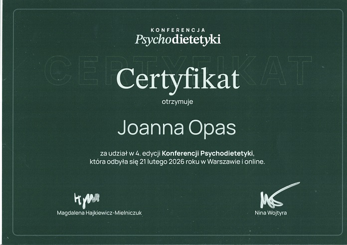 Umożliwiło mi to zrozumienie schematów związanych z odżywianiem i pracę z nimi w skuteczny i trwały sposób. Moim celem jest profesjonalna i skuteczna praca zgodnie z najnowszą wiedzą, dlatego na bieżąco śledzę nowinki dietetyczne i uczestniczę w konferencjach, jestem również autorką publikacji naukowych. Należę również do Polskiego Towarzystwa Dietetyki.